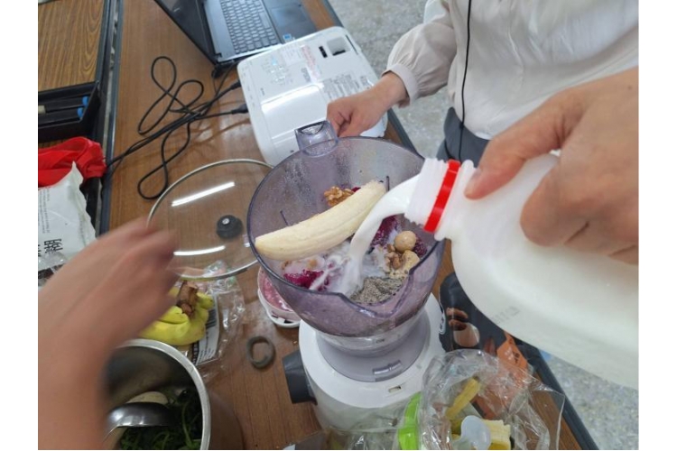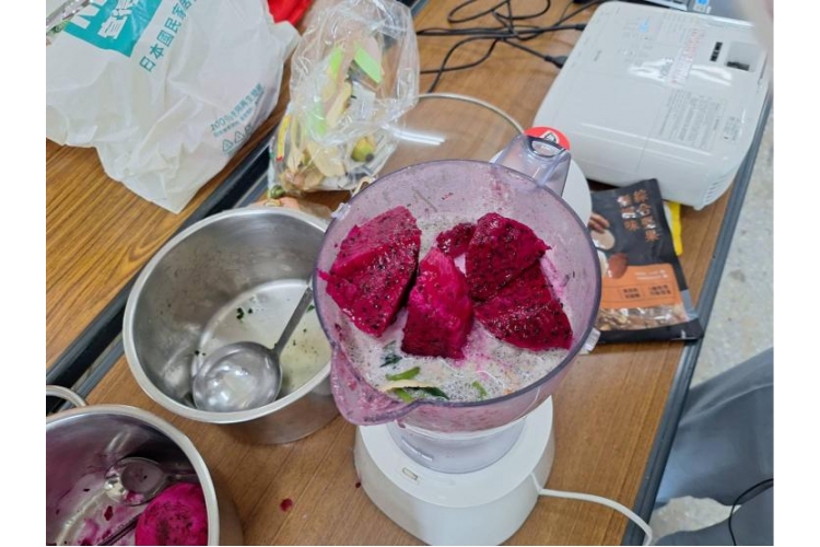 她們更是用心的準備了地瓜葉、堅果、芝麻粉、火龍果、香蕉、牛奶、豆漿